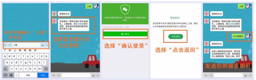 2.发送关键字“上墙”至西安交通大学官方微信平台;